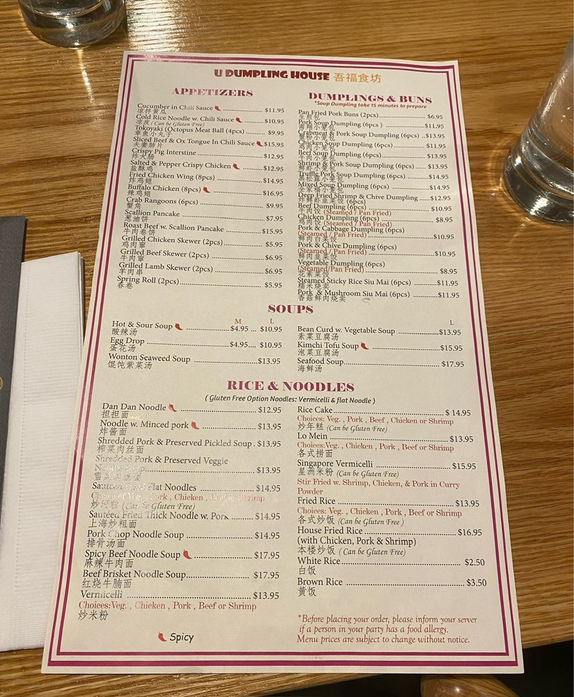 U Dumpling House Menu